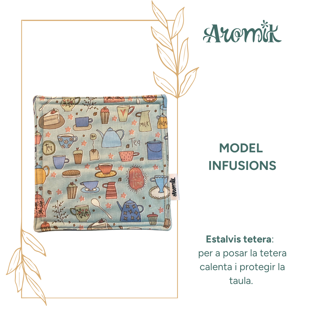Una peça feta a mà, amb estima i detall, per cuidar els teus rituals d'infusió. Aquest estalvi està confeccionat amb teles de gran qualitat, suaument encoixinades, perquè puguis gaudir de la teva tetera ben calenta sense preocupar-te per la taula.
